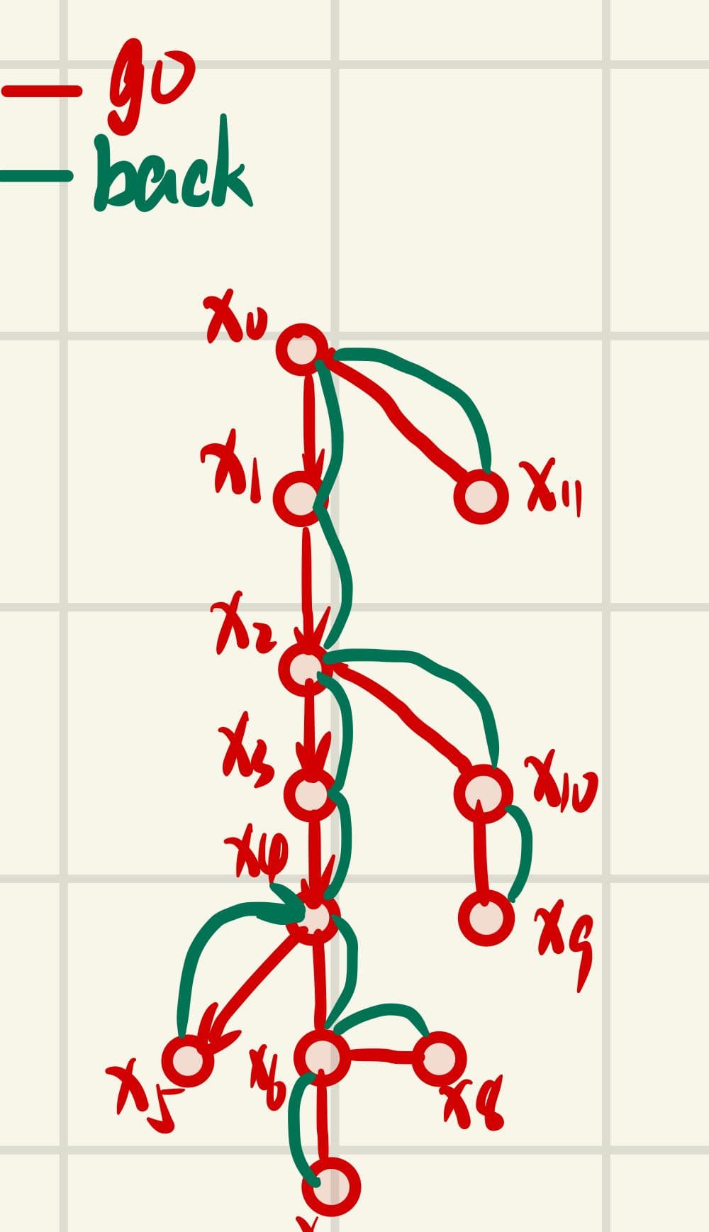 (iii) If $Ni=N_G(x_i)\backslash T_i\not=\emptyset$, then join $x_i$ to a vertex $x{i+1}\in Ni$ and let $T{i+1}=Ti\cup{x{i+1}}$ and $x_{i+1}\to x_i$
