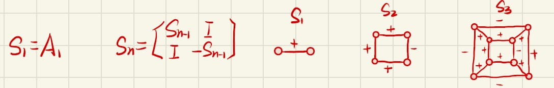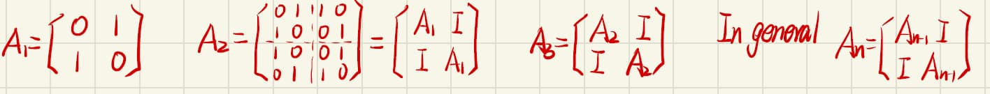 If $n=1$, $S1=\left[\begin{matrix}0&1\1&0\end{matrix}\right],S_1^2=I$. Assume that $S{n-1}^2=(n-1)I$